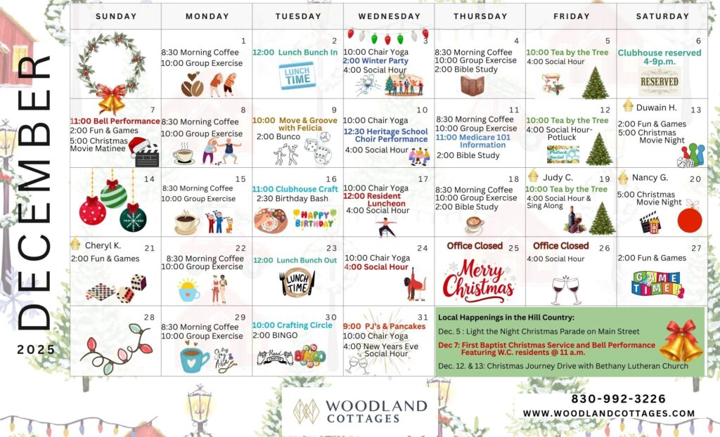 Welcome to Woodland Cottages Senior Living Community in Fredericksburg! Ideally located in Texas Hill Country, our one and two-bedroom homes feature thoughtful interiors and inviting amenities in a town known for tradition and hospitality. Surrounded by scenic views, museums, and wineries, our tight-knit 55+ community is loved for its lifestyle rooted in comfort, convenience, and charm. Life at our 55+ cottages in Fredericksburg, TX, helps you stay connected to local favorites. A short drive will take you to E Main Street, where you can browse through curated exhibitions at the nearby National Museum of the Pacific War, enjoy a relaxed wine tasting, or walk the stone paths of the Japanese Garden of Peace. Schedule your tour and see what makes Woodland Cottages the perfect place to start your next chapter.