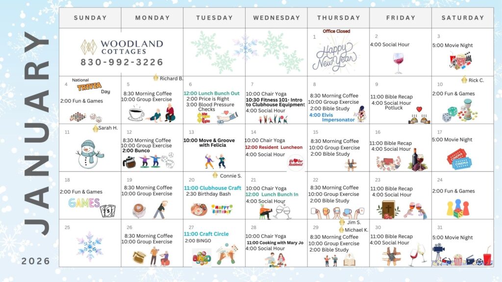 Welcome to Woodland Cottages Senior Living Community in Fredericksburg! Ideally located in Texas Hill Country, our one and two-bedroom homes feature thoughtful interiors and inviting amenities in a town known for tradition and hospitality. Surrounded by scenic views, museums, and wineries, our tight-knit 55+ community is loved for its lifestyle rooted in comfort, convenience, and charm. Life at our 55+ cottages in Fredericksburg, TX, helps you stay connected to local favorites. A short drive will take you to E Main Street, where you can browse through curated exhibitions at the nearby National Museum of the Pacific War, enjoy a relaxed wine tasting, or walk the stone paths of the Japanese Garden of Peace. Schedule your tour and see what makes Woodland Cottages the perfect place to start your next chapter.